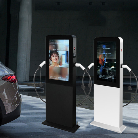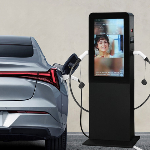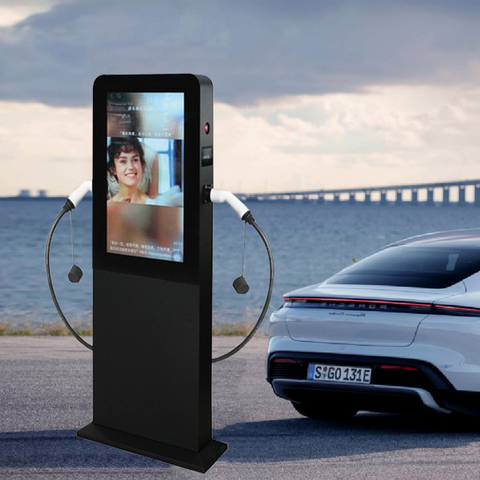 Зарядное устройство переменного тока для электромобилей, 44 кВт, напольное зарядное устройство для электромобилей с рекламным игровым экраном
